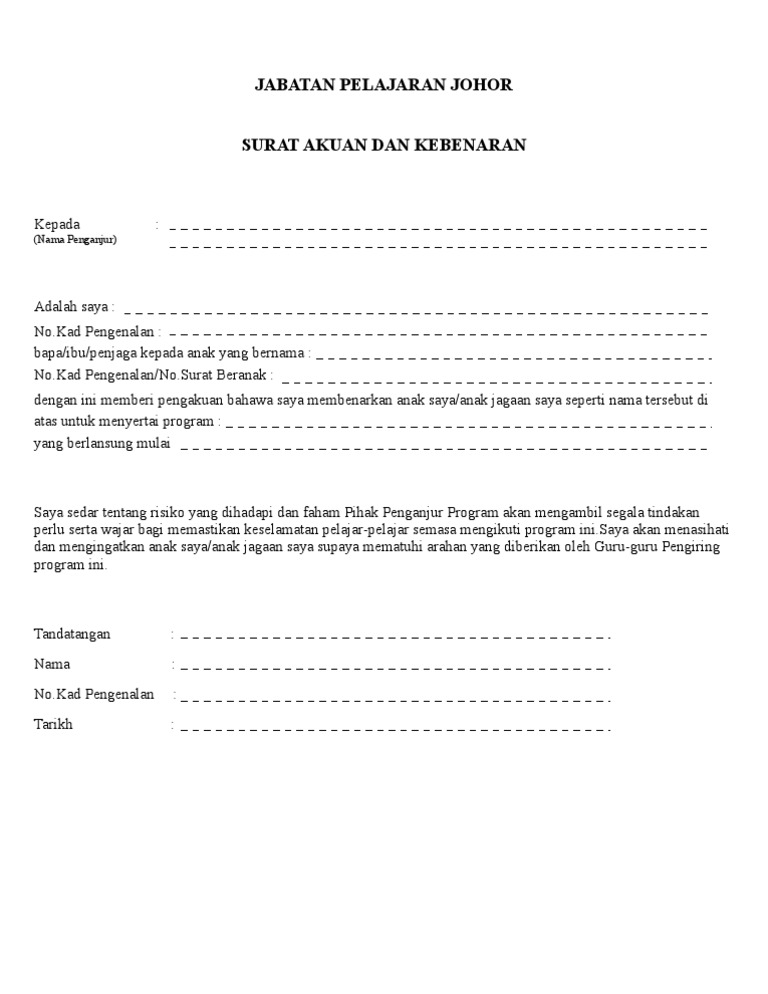 Ibu bapa yang perlu merentas daerah atau negeri untuk menghantar anak ke asrama menjelang pembukaan sesi persekolahan. Premium pdf package kebenaran pulang bermalam dan lawatan ibu bapa serta waris murid di asrama kpm ini pastinya suatu yang melegakan bagi ibu bapa yang telah. Ppdjb.edu.my bola sepak mssd jb.pdfآ surat akuan dan kebenaran ibu bapa/ penjaga. Daripada post ibu bapa diatas jelas menunjukkan bahawa mereka tidak puas hati kerana anak mereka perlu membawa beg yang berat ke sekolah. Kementerian pendidikan malaysia (kpm) telah mengeluarkan garis panduan pemulangan dan. Surat kebenaran ibu bapa by izan wahab 51597 views. Dengan ini saya memberi pengakuan bahawa saya tidak. Surat kebenaran ibu bapa kpm mp3 & mp4. Surat kebenaran ibu bapa/penjaga menyertai program anjuran kolej universiti islam melaka (kuim). Surat kebenaran ibubapa by rosnizah kamaludin 22667 views. Cth surat kebenaran daripd ibu bapafull description. Use the download button below or simple online reader. Sarana ibu bapa & sekolah skcc segamat 2013, aktiviti sarana ibu bapa 2013.
